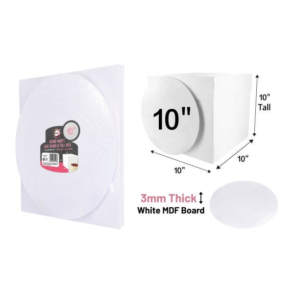 10" Round White Cake Board & Tall Box